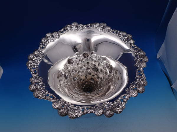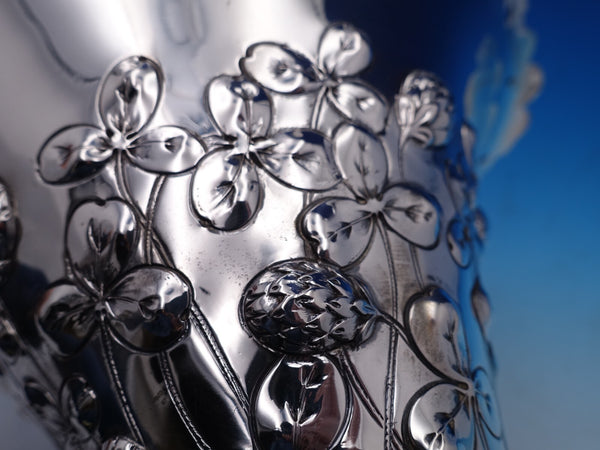 Gorgeous Clover (not stamped/hallmarked), presumably by Tiffany, sterling silver giant funnel. This funnel measures 9 1/2" tall x 13" and weighs 36.7 troy ounces. It likely had a stand originally. It is not monogrammed and is in excellent vintage condition.