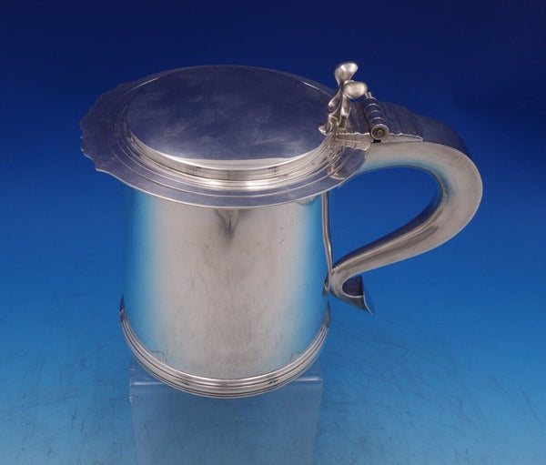 Outstanding Colonial Style Tiffany and Co England sterling silver wine cooler in the form of a tankard. This cooler is massive weighing 57 troy ounces. This piece has an English date mark for 1985. It measures 8 3/4" tall x 5 7/8" x 7 1/4". It is not monogrammed and is in good vintage condition. Amazing piece!