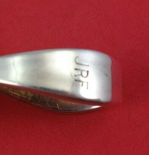Sterling silver original bent handle Baby Food Pusher 2 1/2" in the pattern Cordis by Tiffany and Co. It is monogrammed (monos vary) and is in excellent condition. Rare piece!