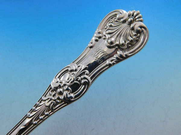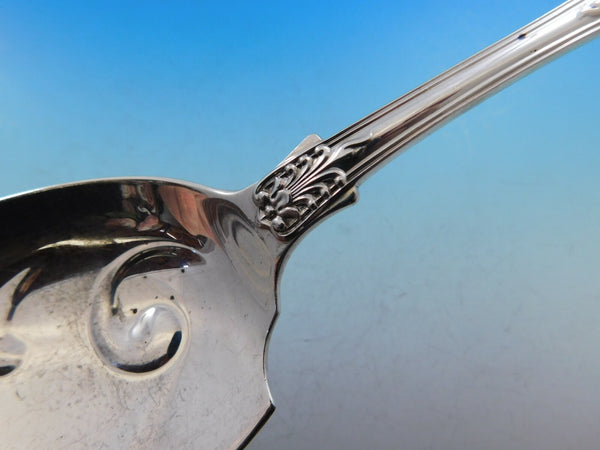 Lovely sterling silver Fish Server measuring 12" in the pattern English King by Tiffany Co. This piece features a large fancy decorated serving area. It is not monogrammed and is in excellent condition.