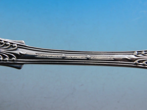 Incredible sterling silver Fish Serving Set, 2-Piece, including: Server 11 1/4" and Fork 9" in the pattern English King by Tiffany Co. This piece features a large fancy serving area. It is monogrammed (monos vary) and is in excellent condition.