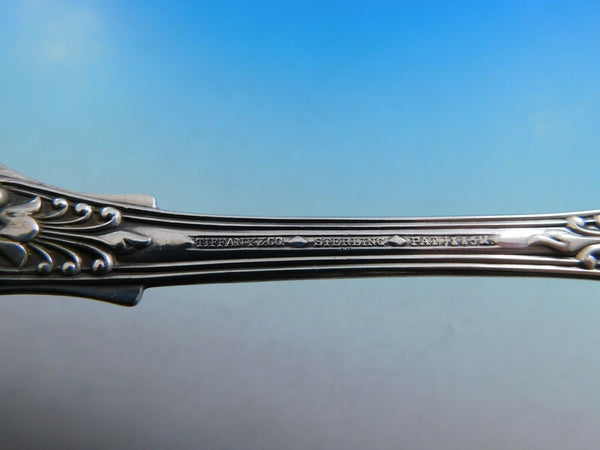 Beautiful sterling silver Pie Server measuring 11 1/4" in the pattern English King by Tiffany Co. This piece features a nicely serrated straight edge. It is monogrammed (monos vary) and is in excellent condition.