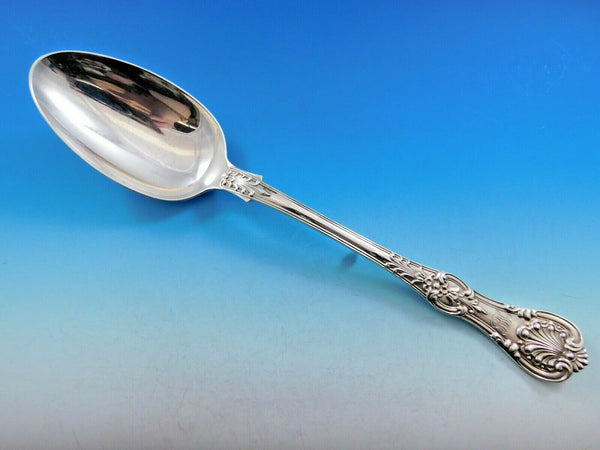 Beautiful sterling silver Stuffing Spoon measuring 12 1/2" in the pattern English King by Tiffany Co. This piece features a large serving bowl and button on back of handle. It is not monogrammed and is in excellent condition.