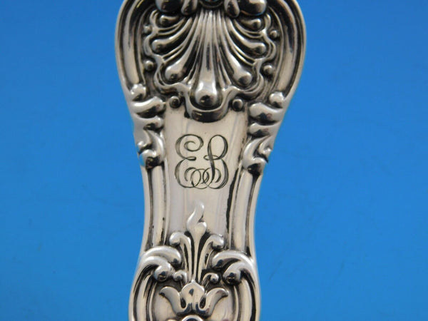 Sterling silver Waffle Server with Pierced Floral Design 9" in the pattern English King by Tiffany and Co. It is monogrammed (monos vary) and is in excellent condition.