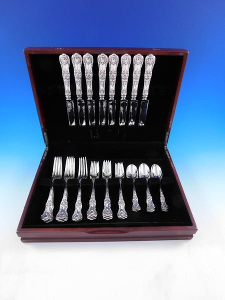 Dinner size English King by Tiffany Co. sterling silver Flatware set, 32 pieces. This set includes: