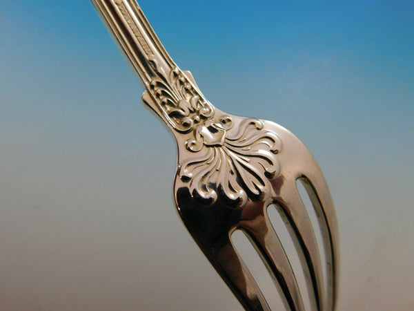 Patterns similar to our English King were first used in France and England late in the eighteenth century and have remained among the most popular styles for>flatware today, in both Europe and America. Tiffany & Co. first made its own version of English King in 1885. It harmonizes with any eighteenth-century-inspired style neo-Georgian, Colonial, Louis XVI, Sheraton, Chippendale, Adam or Hepplewhite. The rich, intricate decoration of Tiffany&apos s English King pattern reflects the luxurious entertainments given during the latter part of the eighteenth century and will enhance and give a sense of occasion to present-day settings.