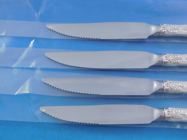 Sterling silver hollow handle with stainless serrated blade Steak Knife Custom Made set of 4 pieces 8 1/2" in the pattern English King by Tiffany and Co. It is not monogrammed and is in excellent condition.