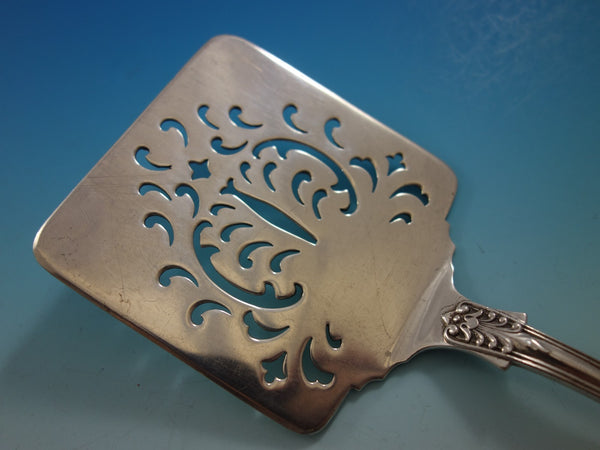 Sterling silver Waffle Server with unusual scallop piercings in the pattern English King by Tiffany.