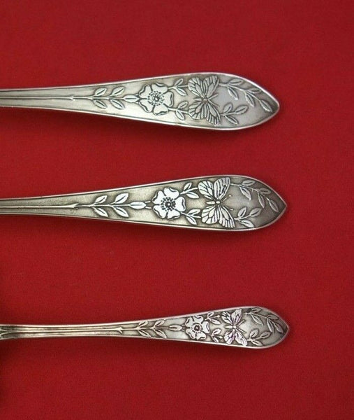 Sterling silver Child's Set 3-piece with butterflies and flowers in the pattern Faneuil Acid Etched by Tiffany and Co. This set includes: