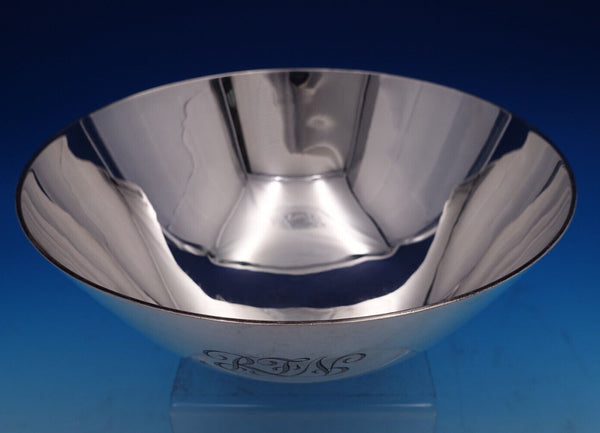 Superb Faneuil by Tiffany and Co sterling silver salad bowl marked #19750, reproduction, original by Joseph Conyers Boston about 1700. This bowl measures 4 1/4" tall x 9" and weighs 24.3 troy ounces. It is monogrammed "RFN" (see photos), and is in good estate condition. Terrific piece!