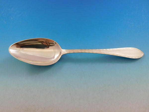 8 Teaspoons, 6" 8 Place Soup Spoons, 7 1/8" 8 Flat Handle Butter Spreaders, 5 7/8" 8 Bouillon Soup Spoons, 5 1/2" 8 Demitasse Spoons, 4 3/8" 8 Gumbo Soup Spoons, 7 1/2" 8 Breakfast Knives w/stainless blades, 8" 2 Serving Spoons, 8 3/4" 1 Cake Server w/stainless blade, 10 1/8"