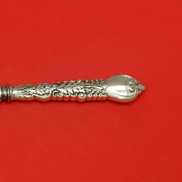 Sterling silver hollow handle with stainless blade Ham Slice, approximately 11 1/2" in total length, custom made in the pattern Florentine by Tiffany and Co. The blade itself measures 7 1/2" with a guard at the end. One side of the blade is beveled and the other is serrated. The tip of the blade features two prongs for picking up meat. It is not monogrammed and is in excellent condition.