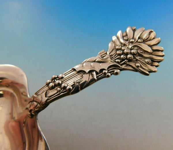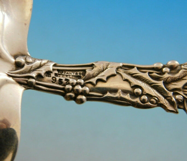 Stunning sterling silver Nut Spoon measuring 3 3/4" in the pattern Holly by Tiffany and Co. This piece features beautiful holly leaves and berries throughout the handle and a heart shaped bowl. It is not monogrammed and in excellent condition.