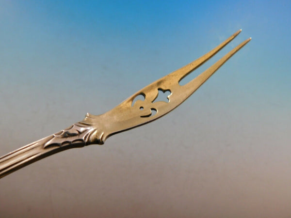 Intriguing sterling silver Olive Fork measuring 6 7/8" in the pattern Holly by Tiffany. This piece features beautiful holly leaves and berries throughout the handle and piercings above the tine. It is not monogrammed and in excellent condition.