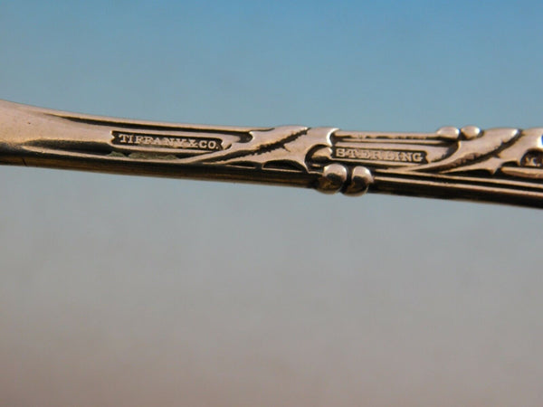 Stunning sterling silver Jelly Server, large, measuring 7" in the pattern Holly by Tiffany. This piece features beautiful holly leaves and berries throughout the handle. It is monogrammed (see photo) and in excellent condition.