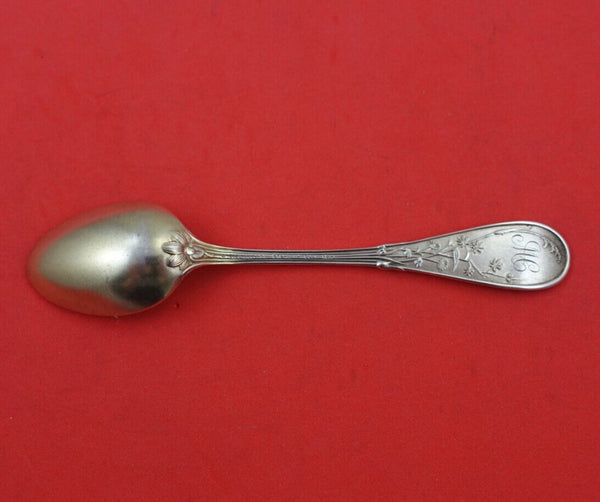 Sterling silver 4 O'Clock Spoon 4 7/8" with gold washed bowl in the pattern Japanese by Tiffany and Co. It is monogrammed on the reverse (monos vary) and is in excellent condition.