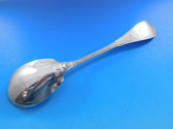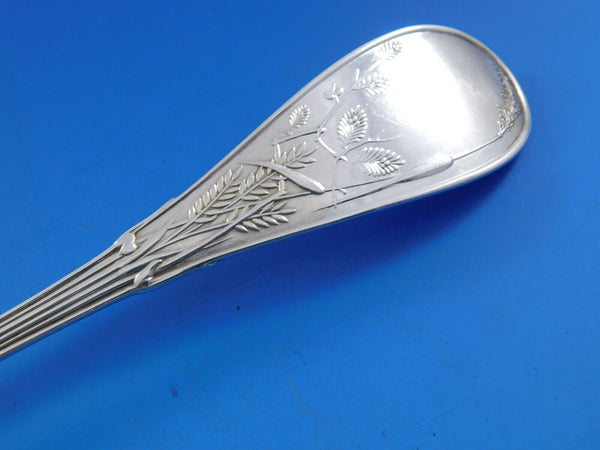 Lovely sterling silver Berry Spoon Pointed 9 1/8" in the multi-motif pattern Japanese by Tiffany and Co. The handle of this piece features a Japonesque bird perched on a branch, surrounded by foliage. It is not monogrammed and is in excellent condition.