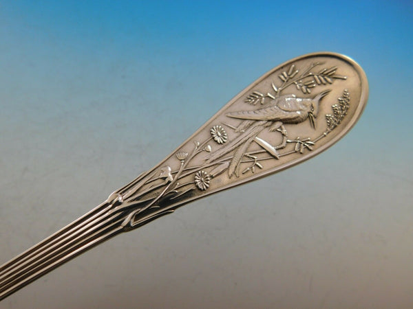 Beautiful sterling silver Cheese Scoop measuring 9 1/8" in the pattern Japanese by Tiffany and Co. The handle of this piece features a lovely bird perched on a branch, surrounded by foliage. It is monogrammed (see photo) and is in excellent condition.