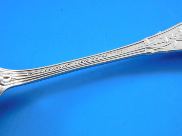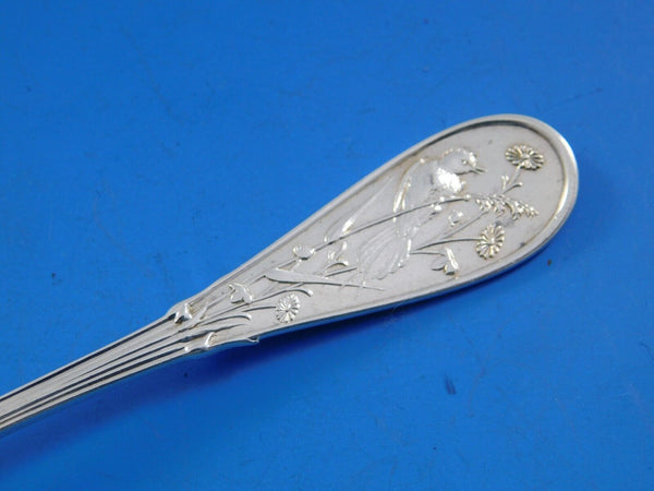 Sterling silver Egg Spoon 4 3/4" in the multi-motif pattern Japanese by Tiffany and Co. It is monogrammed on the reverse (as shown) and is in excellent condition.