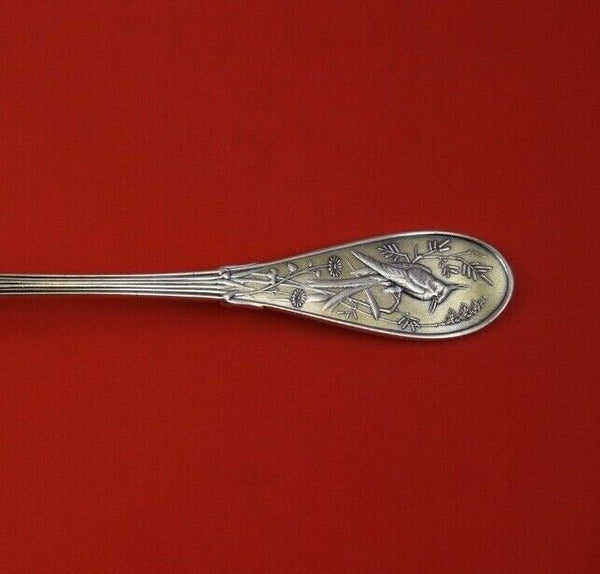 Sterling silver Fish Server Bright-Cut with Geometric Design on Blade 11 1/2" in the multi-motif pattern Japanese by Tiffany and Co. It is monogrammed on the reverse and is in fair condition with a small crack in the top corner of the blade.