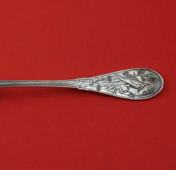 Sterling silver Fish Serving Fork Bright-Cut with Turtle and Flowers 10 1/4" in the pattern Japanese by Tiffany and Co. It is not monogrammed and is in excellent condition.