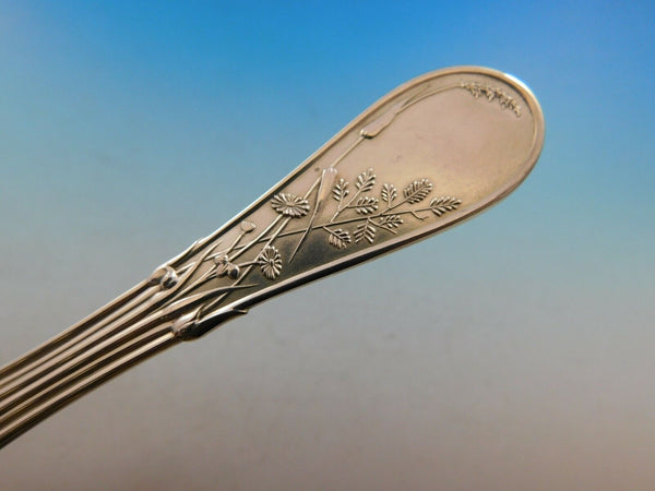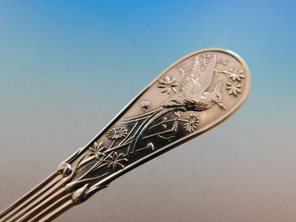 Japanese was designed in 1871, during the most innovative period in the history of Tiffany silver, and it is still one of the most popular of all Tiffany patterns. Japanese was the first Tiffany pattern to introduce silver decorated in the Japanese revival style. The flowing designs of branches and twigs with leaves, buds, flowers and exotic birds were entirely different from anything in American silver at that time.