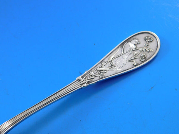 Japanese was designed in 1871, during the most innovative period in the history of Tiffany silver, and it is still one of the most popular of all Tiffany patterns. Japanese was the first Tiffany pattern to introduce silver decorated in the Japanese revival style. The flowing designs of branches and twigs with leaves, buds, flowers and exotic birds were entirely different from anything in American silver at that time.