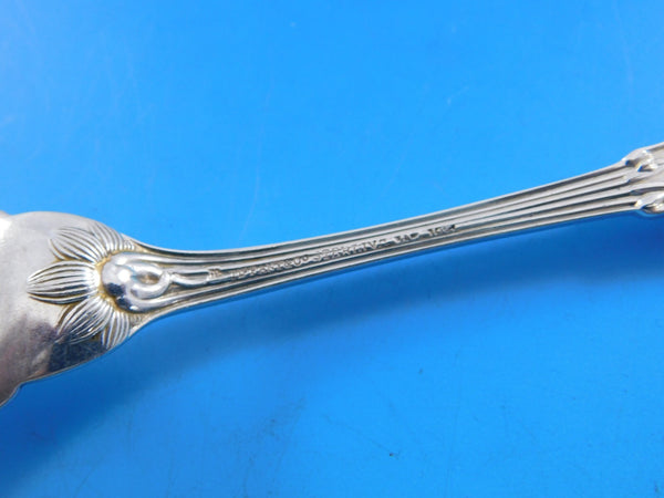 Wonderful sterling silver Pastry Fork 3-Tine 6 1/4" in the multi-motif pattern Japanese by Tiffany and Co. The handle of this piece features a Japonesque bird perched on a branch, surrounded by foliage. It is monogrammed on the reverse (monos vary) and is in excellent condition.