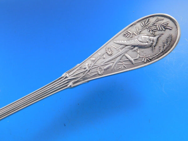 Beautiful sterling silver original flat handle all sterling Pie Server 10 1/2" in the multi-motif pattern Japanese by Tiffany and Co. The handle of this piece features a lovely bird perched on a branch, surrounded by foliage. It is monogrammed on the reverse (as shown) and is in excellent condition.