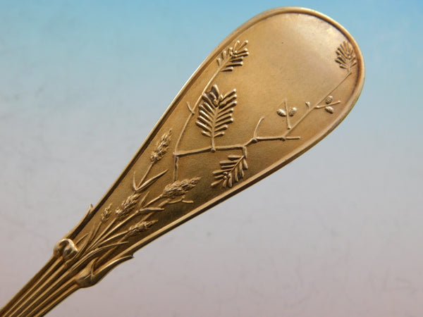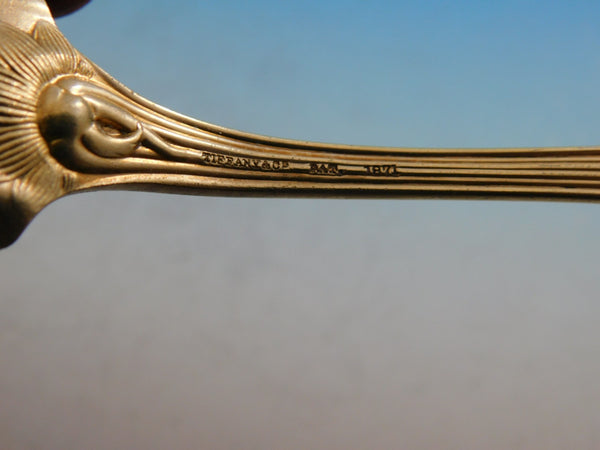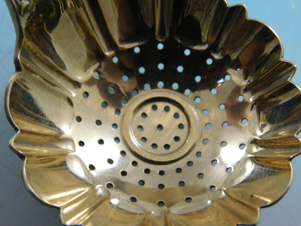 Lovely sterling silver Sugar Sifter measuring 6 7/8" in the pattern Japanese by Tiffany and Co. The handle of this piece features a lovely bird perched on a branch, surrounded by foliage. This piece is vermeil (completely gold-washed) and features a flower like bowl with lovely piercings. It is not monogrammed and is in excellent condition.