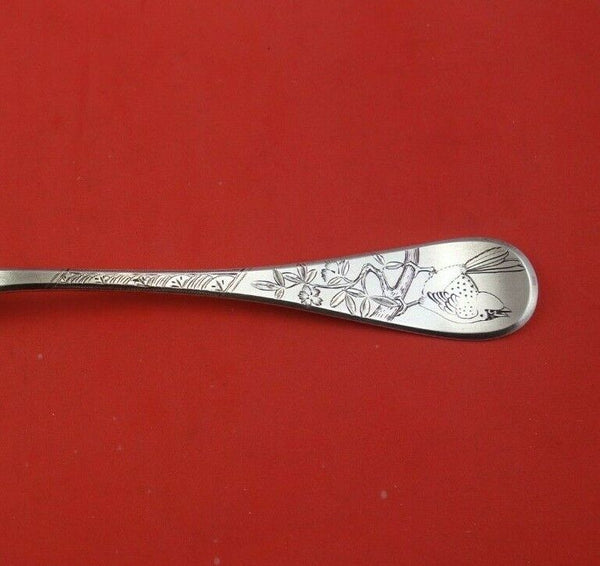 Sterling silver Berry Spoon with Bird on Branch 8 1/2" in the multi-motif pattern King William Engraved by Tiffany and Co. It is monogrammed on the reverse (monos vary) and is in excellent condition.