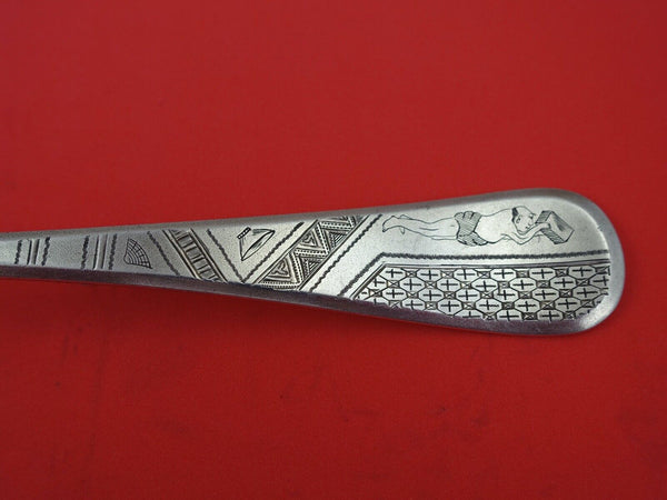 Sterling Silver Stuffing Spoon with button, gold washed in Tiffany book figure 403 engraved with rare human figure and and geometric designs 11 1/8"in the pattern King William Engraved by Tiffany Co.. It is monogrammed (monos vary) and is in excellent condition.