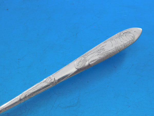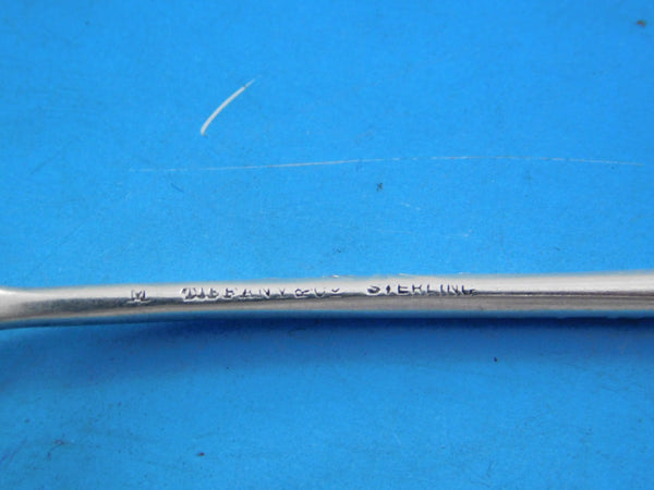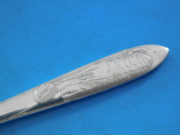 Sterling silver Cocktail Fork / Oyster Fork 3-Tine with Lobster 5 5/8" in the pattern Lap Over Edge Acid Etched by Tiffany and Co. It is monogrammed on the reverse (monos vary) and is in excellent condition.
