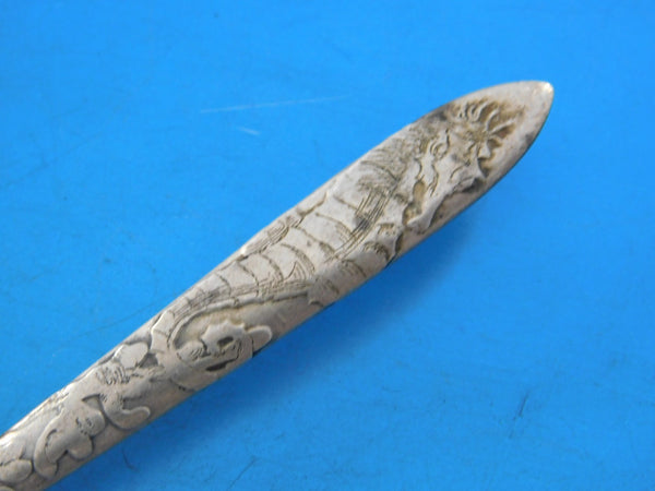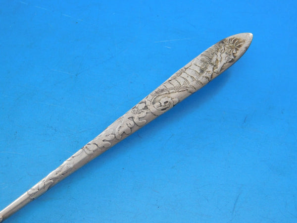 Sterling silver Cocktail Fork / Oyster Fork 3-Tine with Seahorse 5 5/8" in the pattern Lap Over Edge Acid Etched by Tiffany and Co. It is not monogrammed and is in excellent condition.