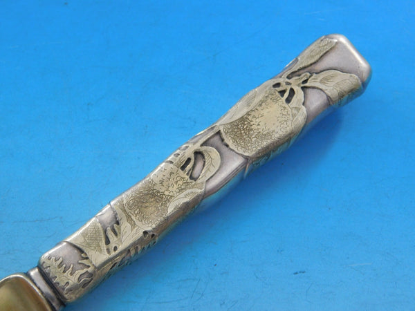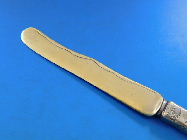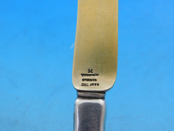 Sterling silver hollow handle, all-sterling, Dessert Knife with gold-washed blades, and gold accent orange motif 7 1/4" in the pattern Lap Over Edge Acid Etched By Tiffany Co. It is not monogrammed and is in excellent condition.