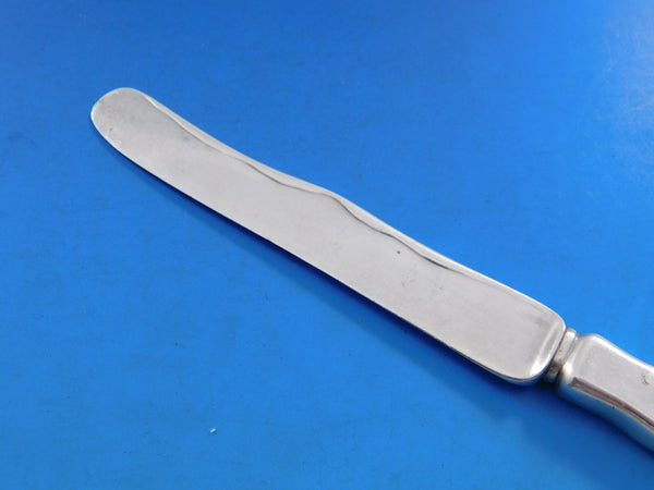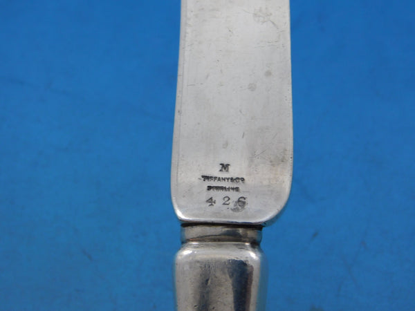 Sterling silver hollow handle, all-sterling, Dessert Knife with grapes and vines 7 1/2" in the pattern Lap Over Edge Acid Etched By Tiffany Co. It is monogrammed (monos vary) and is in excellent condition.