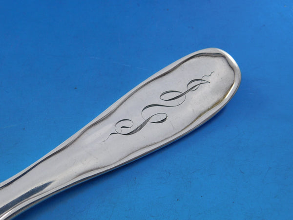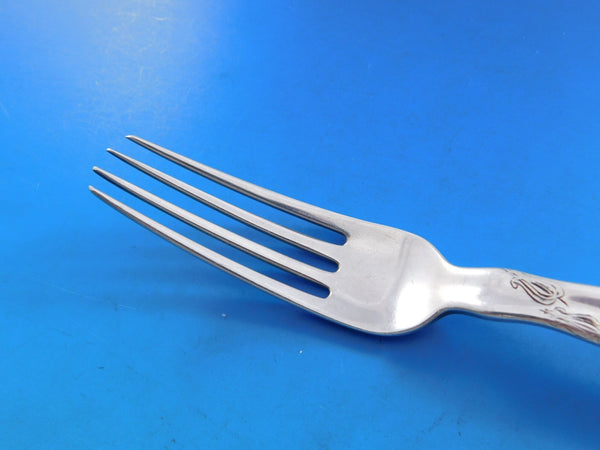 Sterling silver Dinner Fork with lily motif 7 7/8" in the pattern Lap Over Edge Acid Etched By Tiffany Co. It is monogrammed (monos vary) and is in excellent condition.