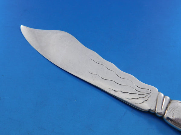 Sterling silver hollow handle, all-sterling, Fish Knife with engraved blade with oyster and sea life motif 7 7/8" in the pattern Lap Over Edge Acid Etched By Tiffany Co. It is not monogrammed and is in excellent condition.
