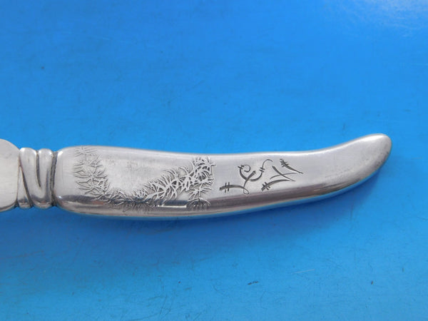 Sterling silver hollow handle, all-sterling, Fish Knife with engraved blade with two fish and seaweed motif 7 7/8" in the pattern Lap Over Edge Acid Etched By Tiffany Co. It is not monogrammed and is in excellent condition.