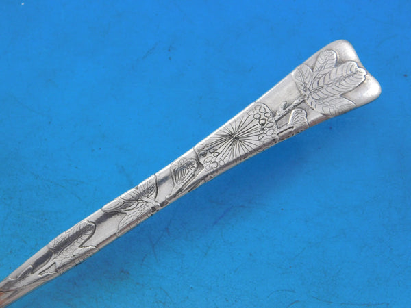 Sterling silver Fruit Fork 2-tine, with sensitive plant 6" in the pattern Lap Over Edge Acid Etched By Tiffany Co. It is monogrammed (monos vary) and is in excellent condition.