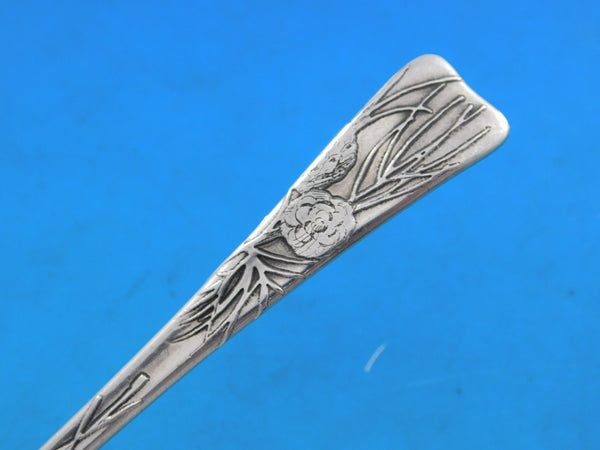 Sterling silver Parfait Spoon with floral motif 6" in the pattern Lap Over Edge Acid Etched By Tiffany Co. It is monogrammed in bowl (as seen in photos) and is in excellent condition.
