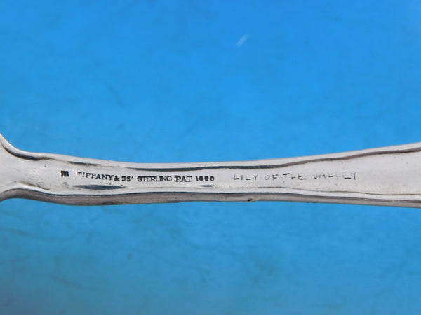 Sterling silver Regular Fork with lily of the valley floral motif 7 1/4" in the pattern Lap Over Edge Acid Etched By Tiffany Co. It is not monogrammed and is in excellent condition.