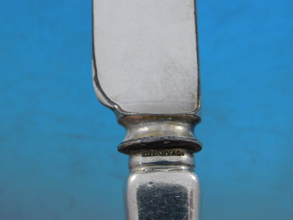 Sterling silver Regular Knife, blunt blade, with mushroom motif 9 1/4" in the pattern Lap Over Edge Acid Etched By Tiffany Co. It is not monogrammed and is in excellent condition.