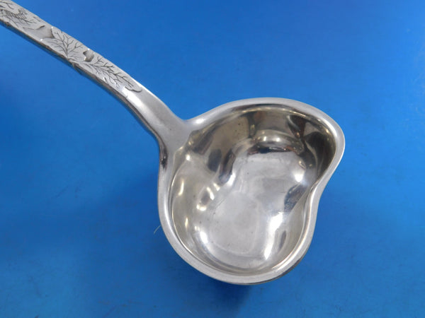 Lap Over Acid Etched Tiffany Sterling Silver Gravy Ladle Leaves Berries 7 1/4"