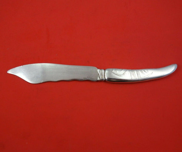 Sterling silver hollow handle all sterling Fish Knife with Bird and Cattails 7 7/8" in the pattern Lap Over Edge Acid Etched by Tiffany and Co. It is not monogrammed and is in excellent condition.