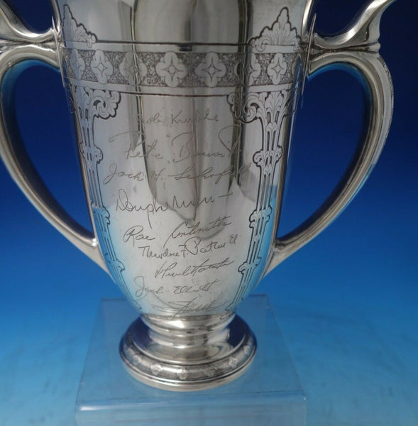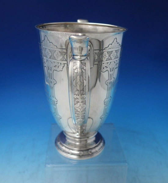 Spectacular Lap Over Edge Acid Etched by Tiffany and Co sterling silver trophy / presentation cup featuring leaves and flowers. It holds three pints and is marked #16687/1555.