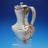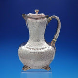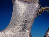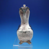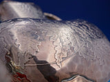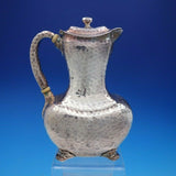 Incredible beautifully hand hammered Lap Over Edge Acid Etched by Tiffany Co. milk pitcher with acid etched fern and oak leaves that holds 2 3/4 pts and is marked #6240 7518. It measures 7 3/4" x 6" and weighs 21 ozt. It is not monogrammed and is in good vintage condition with minimal signs of wear. Stunning item!
