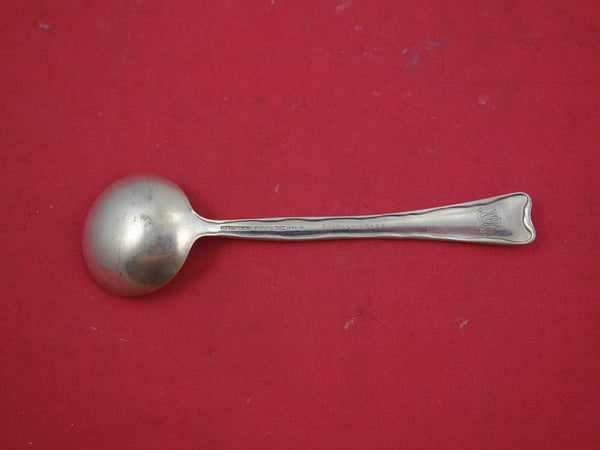 Lap Over Edge Acid Etched by Tiffany Co. sterling silver Bouillon Soup Spoon with buffalo grass, 5 1/4". It is monogrammed (monos vary) and is in excellent condition.