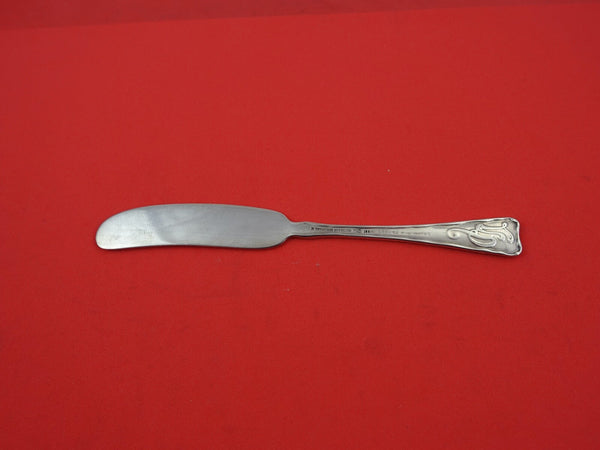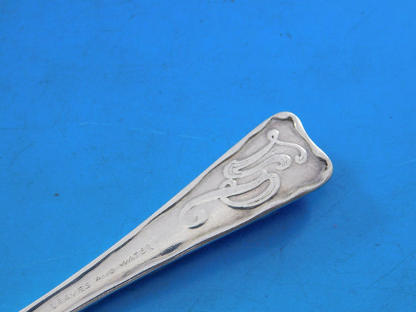 Sterling silver Butter Spreader flat handle, with leaves in water 6" in the pattern Lap Over Edge Acid Etched by Tiffany and Co. It is monogrammed (monos vary) and is in excellent condition.