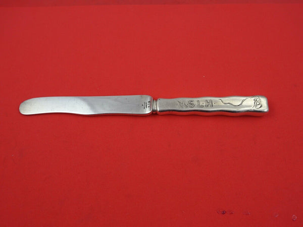 Sterling silver Dessert Knife, hollow handle all sterling with grapes and vines 7 1/2" in the pattern Lap Over Edge Acid Etched by Tiffany and Co. It is monogrammed (monos vary) and is in excellent condition.